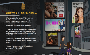 If you would like to start building these habits within your family then you’ll want to check out . The story centers around a girl named Petra as she ventures through the city to learn about the media messages all around her. She and her dad come face to face with clear and hidden messages in different media such as advertising, social media, movies, and fake news.